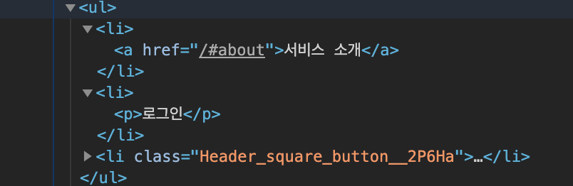 위 코드는 잠시 로그인 버튼에서 a 태그를 p 태그로 바꾸었을 때의 상황입니다.