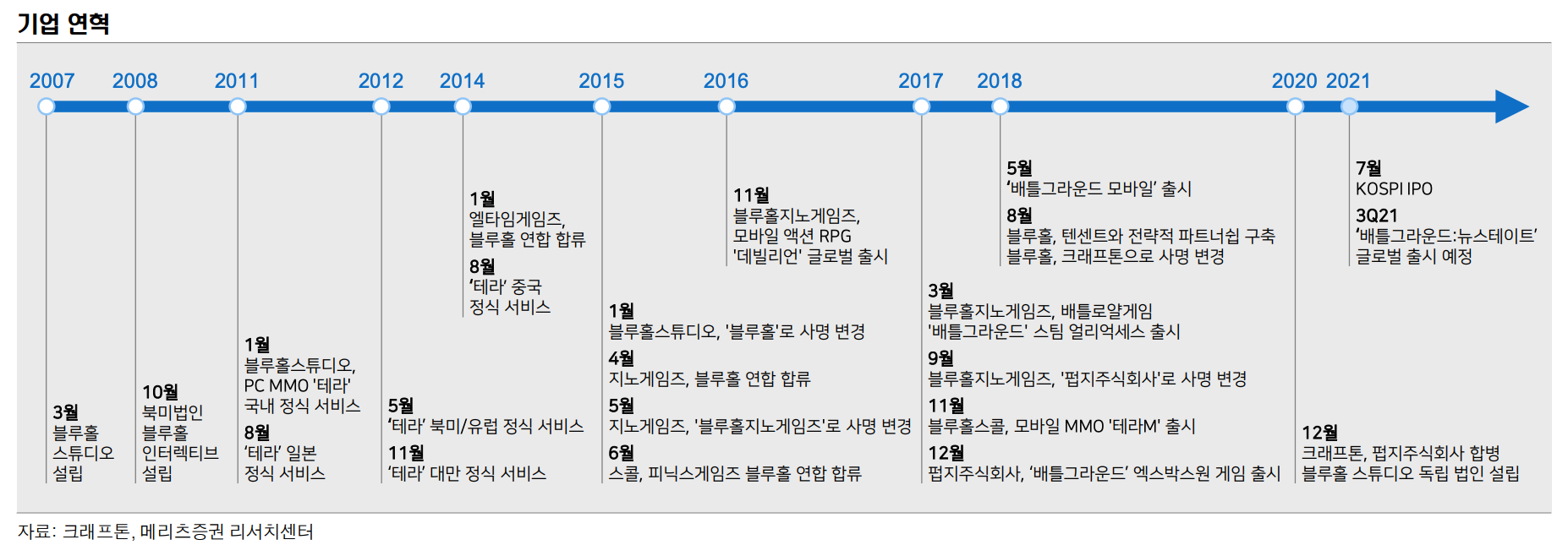 크래프톤(당시 블루홀)은 두 명의 경영 전문가(장병규, 김강석)와 네 명의 게임 전문가(박용현, 황철웅, 김정한, 박현규)가 만나서 2007년에 창업한 회사입니다. 우선 장병규는 '네오위즈'를 창업해 코스닥에 상장하고, '첫눈'을 창업해 네이버에 매각한 창업가입니다. 김강석은 네오위즈에서 게임 퍼블리싱 책임을 맡고 있었고, 박용현은 NC소프트에서 2003년에 출시한 리지니2 제작을 총괄한 인물이었습니다. 황철웅, 김정한, 박현규 역시 박용현과 함께 일해온 게임 제작의 전문가들이었죠.